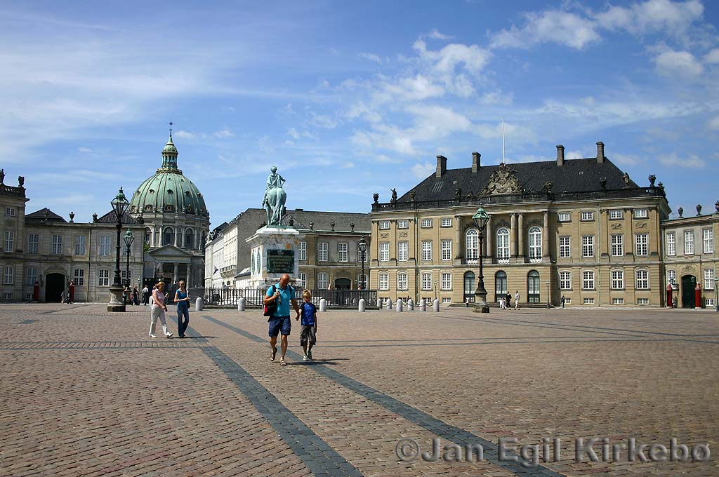 Amalienborg is the winter home of the Danish royal family (currently headed by Queen Margrethe II). It consists of four identical palace facades around and octagonal courtyeard. There is a changing of the guard daily at noon.