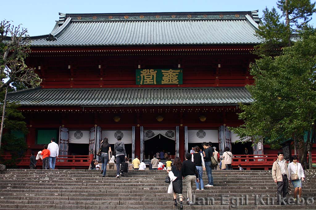 A nice day-trip from Tokyo is to the town of Nikko, one of the highlights of any visit to Japan. The city is 140 km north of Tokyo, and boasts a nice collection of temples and shrines, placed in beautiful mountainous surroundings. The history of Nikko goes back at least to the 8th century, though it came into its own right in the 17th century when it was chosen as the site of the mausoleum for the warlord Tokugawa Ieyasu, who established a shogunate which ruled Japan for 250 years. |